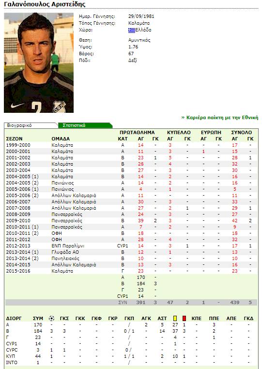 Το soccerbase.info επιλέγει κάθε μέρα και ένα διαφορετικό ποδοσφαιριστή και παραθέτει την ιστορία του σε αριθμούς, από την πλούσια βάση δεδομένων του soccerbase.gr. Σήμερα: Αριστείδης Γαλανόπουλος.