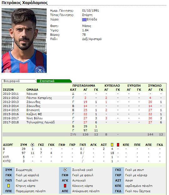 Το soccerbase.info επιλέγει κάθε μέρα και ένα διαφορετικό ποδοσφαιριστή και παραθέτει την ιστορία του σε αριθμούς, από την πλούσια βάση δεδομένων του soccerbase.gr. Σήμερα: Χαράλαμπος Πετράκος.