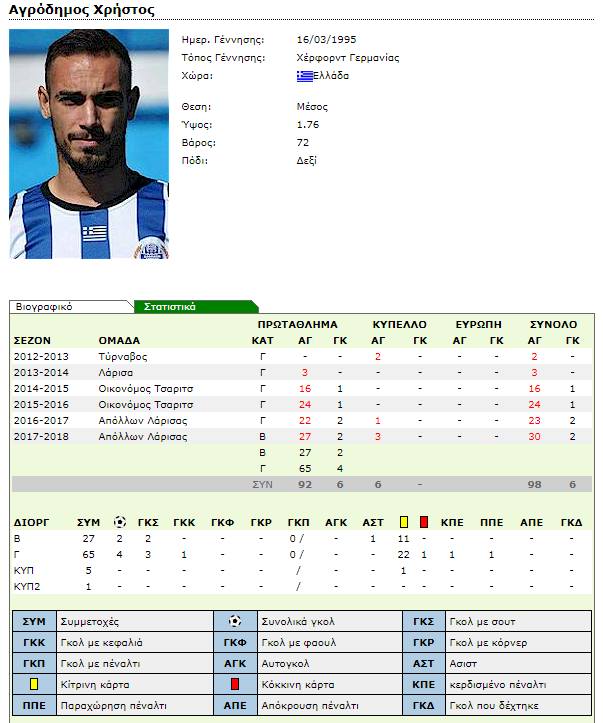 Το soccerbase.info επιλέγει κάθε μέρα και ένα διαφορετικό ποδοσφαιριστή και παραθέτει την ιστορία του σε αριθμούς, από την πλούσια βάση δεδομένων του soccerbase.gr. Σήμερα: Χρήστος Αγρόδημος.