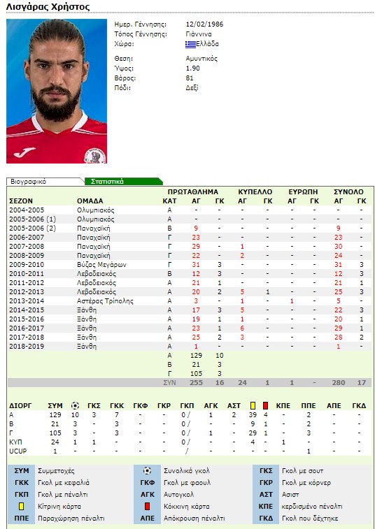 Το soccerbase.info επιλέγει κάθε μέρα και ένα διαφορετικό ποδοσφαιριστή και παραθέτει την ιστορία του σε αριθμούς, από την πλούσια βάση δεδομένων του soccerbase.gr. Σήμερα: Χρήστος Λισγάρας.