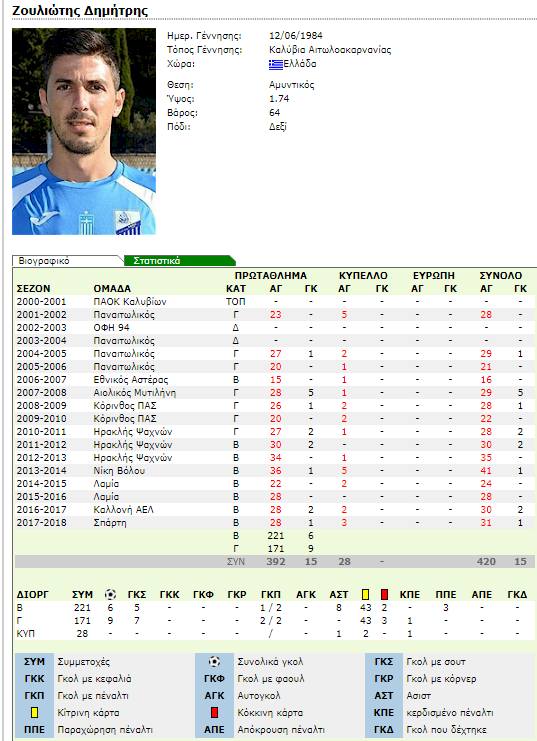 Το soccerbase.info επιλέγει κάθε μέρα και ένα διαφορετικό ποδοσφαιριστή και παραθέτει την ιστορία του σε αριθμούς, από την πλούσια βάση δεδομένων του soccerbase.gr. Σήμερα: Δημήτρης Ζουλιώτης.