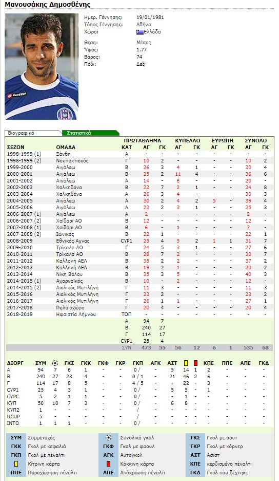 Το soccerbase.info επιλέγει κάθε μέρα και ένα διαφορετικό ποδοσφαιριστή και παραθέτει την ιστορία του σε αριθμούς, από την πλούσια βάση δεδομένων του soccerbase.gr. Σήμερα: Δημοσθένης Μανουσάκης.