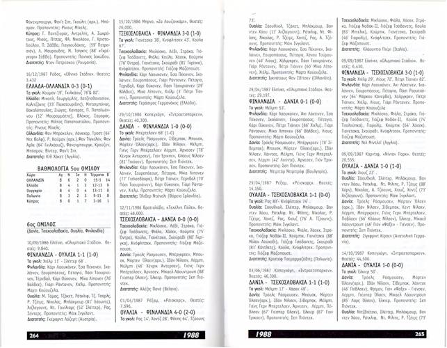 Περιλαμβάνει μεταξύ άλλων, όλα τα αποτελέσματα με συνθέσεις όλων των διοργανώσεων του Ευρωπαϊκού πρωταθλήματος, από το πρώτο προκριματικό παιχνίδι μέχρι τον τελικό. Αφιερώματα στους παίκτες του 2004, αλλά και εκτενής αναφορά στην παρουσία μας το 1980 στην Ιταλία.
