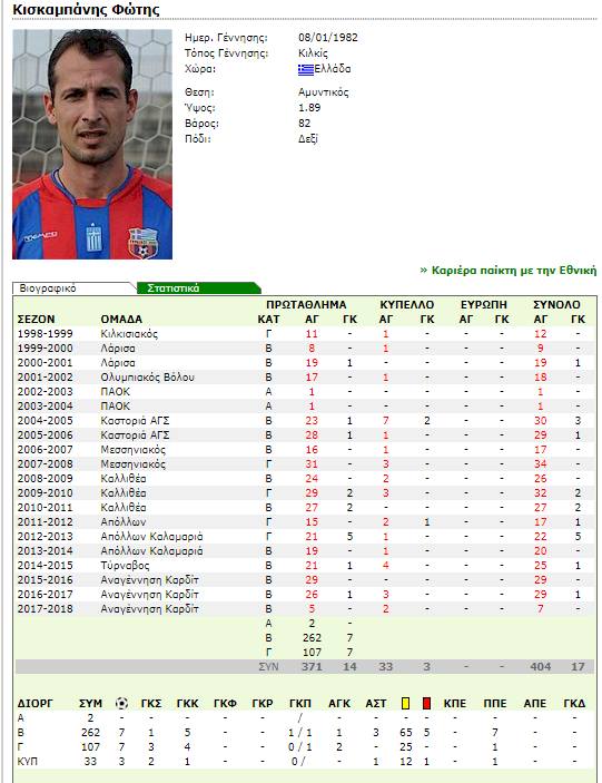 Το soccerbase.info επιλέγει κάθε μέρα και ένα διαφορετικό ποδοσφαιριστή και παραθέτει την ιστορία του σε αριθμούς, από την πλούσια βάση δεδομένων του soccerbase.gr. Σήμερα: Φώτης Κισκαμπάνης.