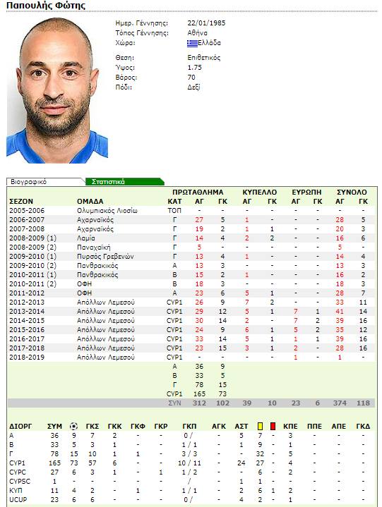 Το soccerbase.info επιλέγει κάθε μέρα και ένα διαφορετικό ποδοσφαιριστή και παραθέτει την ιστορία του σε αριθμούς, από την πλούσια βάση δεδομένων του soccerbase.gr. Σήμερα: Φώτης Παπουλής.