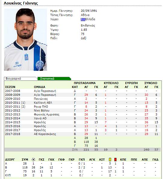 Το soccerbase.info επιλέγει κάθε μέρα και ένα διαφορετικό ποδοσφαιριστή και παραθέτει την ιστορία του σε αριθμούς, από την πλούσια βάση δεδομένων του soccerbase.gr. Σήμερα: Γιάννης Λουκίνας.