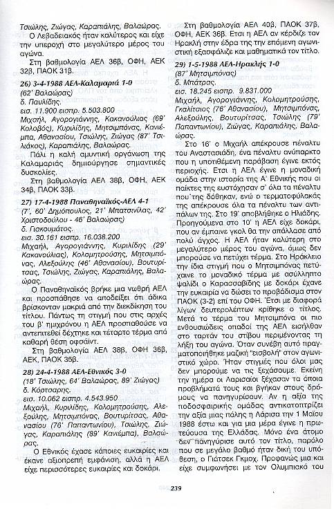 Το 1998 ο Κώστας Αργύρης και ο Δημήτρης Σακελλάρης αποτύπωσαν σε μια ιστορική έκδοση την πορεία της ΑΕΛ από το 1964. Με ια μικρή αναφορά στο τι προηγήθηκε, το βιβλίο μπαίνει αμέσως στη δραση με όλα τα αποτελέσματα με τις συνθέσεις της θεσσαλικής ομάδας, σε πρωτάθλημα και Κύπελλο, γεγονότα, φωτογραφικό υλικό και συμμετοχές και γκολ παικτών. Στο τέλος του βιβλίου ένα τμήμα με όλους τους παίκτες με τις συμμετοχές τους σεζόν σεζόν ξεχωρίζει. Και το κάνει ακόμα πιο ξεχωριστό το γεγονός ότι οι συγγραφείς στην έρευνά τους έχουν καταφέρει να βρουν στην πλειοψηφία των παικτών και ημερομηνία γέννησης, κάτι που σπανίζει σε ανάλογες εκδόσεις.