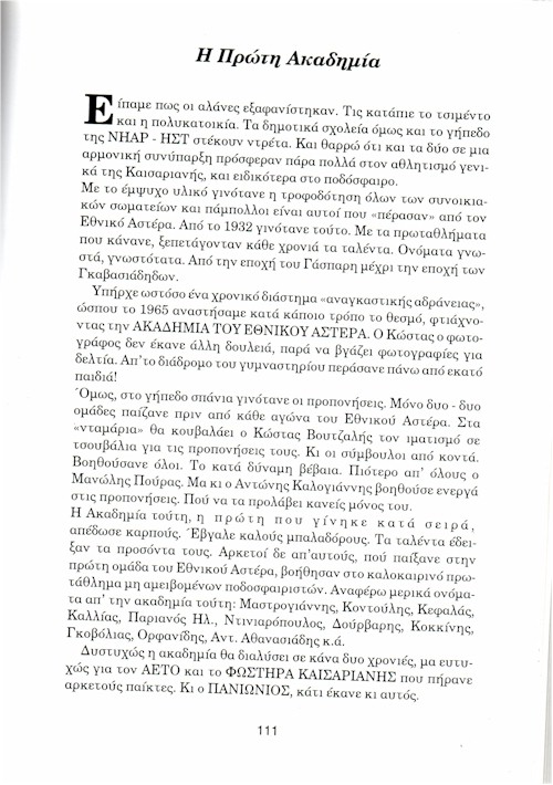 Τίτλος: “Η ΙΣΤΟΡΙΑ ΤΟΥ ΕΘΝΙΚΟΥ ΑΣΤΕΡΑ ΚΑΙΣΑΡΙΑΝΗΣ”