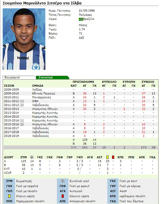 Το soccerbase.gr έχει καταγράψει μια μια τις παρουσίες του και σας παρουσιάζει την καριέρα του και με αριθμούς από το 2009 ως τώρα, που αγωνίζεται στις επαγγελματικές κατηγορίες.
