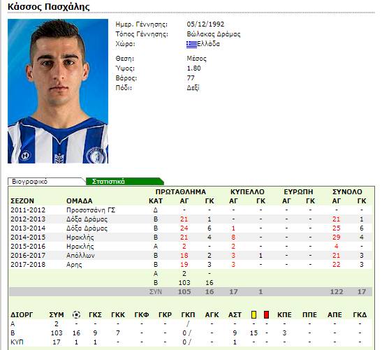 Το soccerbase.info επιλέγει κάθε μέρα και ένα διαφορετικό ποδοσφαιριστή και παραθέτει την ιστορία του σε αριθμούς, από την πλούσια βάση δεδομένων του soccerbase.gr. Σήμερα: Πασχάλης Κάσσος.