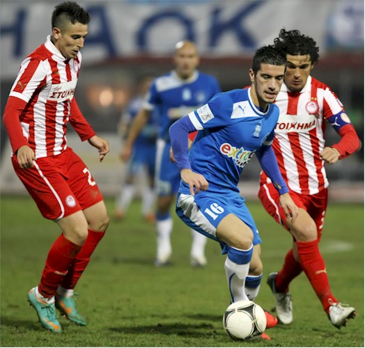 Έτσι στις 23 Αυγούστου 2013 κάνει ντεμπούτο στην Σούπερ Λιγκ στη νίκη της Κέρκυρας επί του Πανθρακικού. Οι πολλές αλλαγές στο ρόστερ τον φέρνουν τον Ιανουάριο του 2014 στη Βέροια. Βοηθάει στην παραμονή της ομάδας της πόλης που γεννήθηκε, βάζοντας και το μοναδικό του γκολ μέσα στη Λιβαδειά.