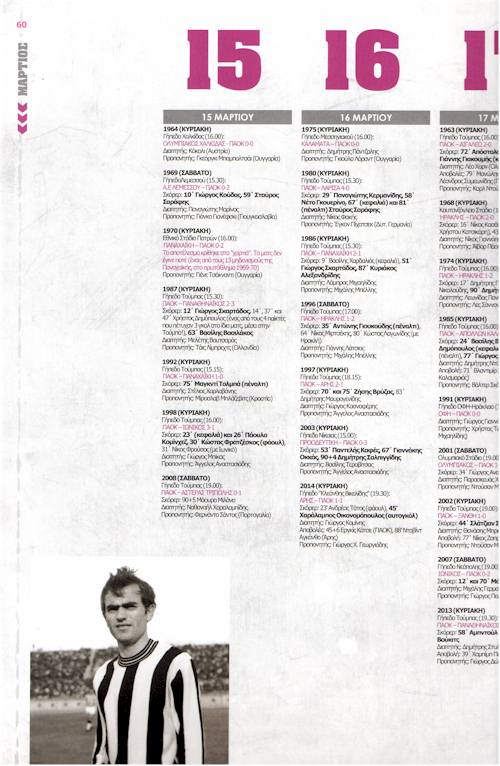 Η πρωτοτυπία έγκειται στο ότι τα παιχνίδια αναφέρονται ανά ημερομηνία. Κάτω από κάθε μέρα υπάρχουν στοιχεία για τα παιχνίδια, πλην συνθέσεων του ΠΑΟΚ και του αντιπάλου.