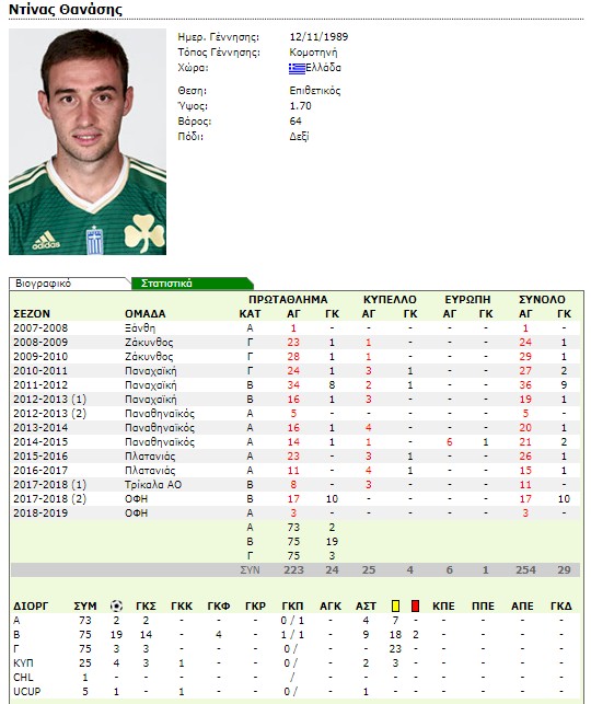 Το soccerbase.info επιλέγει κάθε μέρα και ένα διαφορετικό ποδοσφαιριστή και παραθέτει την ιστορία του σε αριθμούς, από την πλούσια βάση δεδομένων του soccerbase.gr. Σήμερα: Θανάσης Ντίνας.