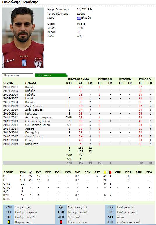 Το soccerbase.info επιλέγει κάθε μέρα και ένα διαφορετικό ποδοσφαιριστή και παραθέτει την ιστορία του σε αριθμούς, από την πλούσια βάση δεδομένων του soccerbase.gr. Σήμερα: Θανάσης Πινδώνης.