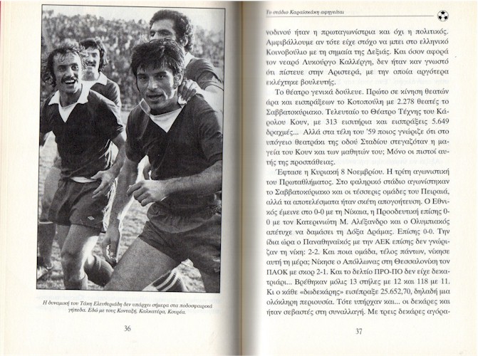 Την εποχή που εκδόθηκε το βιβλίο άνοιγε τις πόρτες του το καινούριο Καραϊσκάκη και σίγουρα το ενδιαφέρον για την ιστορία του ήταν στο ζενίθ. Το εντυπωσιακό είναι ότι ξεφυλλίζοντας το βιβλίο βρίσκεις ένα σωρό φωτογραφίες και θέματα για τον Παναθηναϊκό, τον ΠΑΟΚ, λες και οι δύο συγγραφείς, θεωωρώντας δεδομένο το μεγαλείο του Ολυμπιακού και του γηπέδου του, εξυμνούν και την αξία των αντιπάλων που το επισκέπτονται.