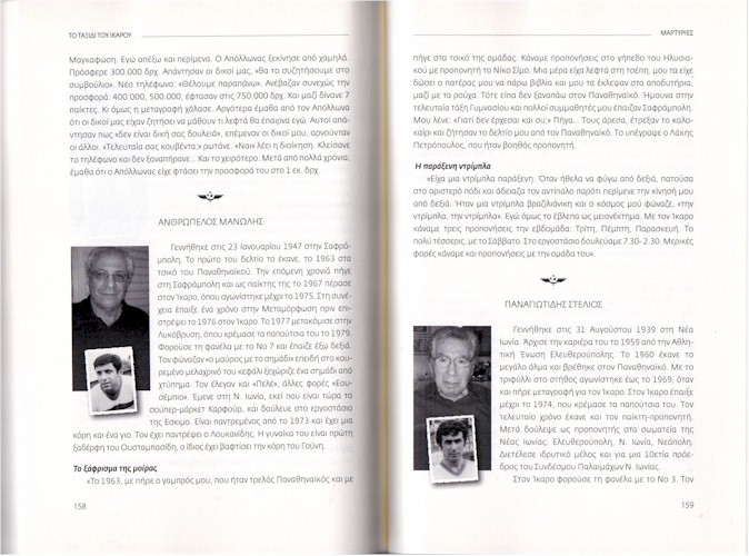 Σαν ομάδα προσφυγικής συνοικίας ο Ίκαρος, δεν θα μπορούσε να μην είναι ομάδα που επικεντρώνει στον άνθρωπο και τις αξίες του, έτσι ο Κώστας παρουσιάζει σε μεγάλο κομάτι του βιβλίου και μαρτυρίες, αλλά και βιογραφικό των ποδοσφαιριστών, που έγραψαν αυτή τη σύντομη, αλλά συγκλονιστική ιστορία.