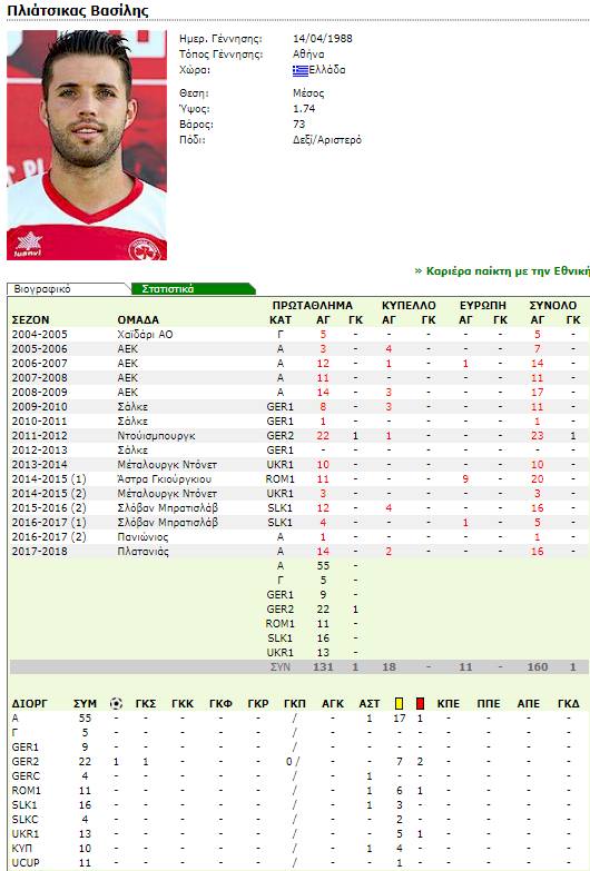 Το soccerbase.info επιλέγει κάθε μέρα και ένα διαφορετικό ποδοσφαιριστή και παραθέτει την ιστορία του σε αριθμούς, από την πλούσια βάση δεδομένων του soccerbase.gr. Σήμερα: Βασίλης Πλιάτσικας.